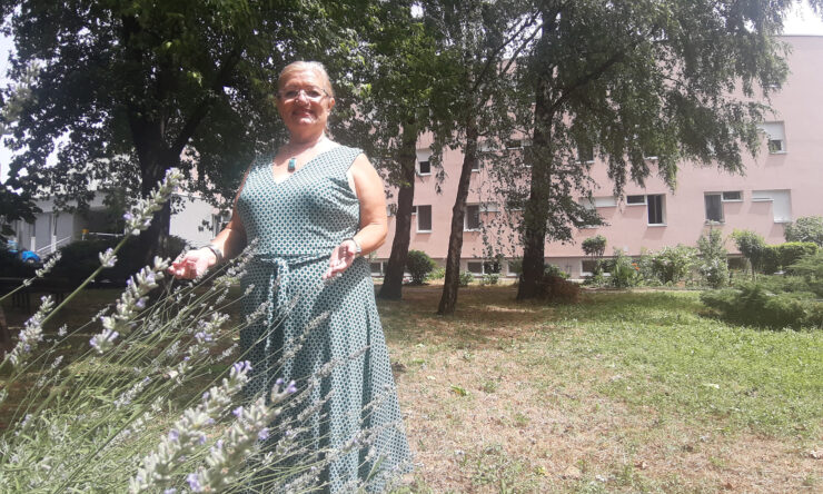 Iz epidemiološkog opreza vani čekamo službenu izjavu. Dok stižu djelatnici Saniteta kako bi jednu korisnicu prevezli na redovitu inzulinsku terapiju, pridružuje nam se gospođa Milka Kozina. Širokog osmijeha i spontana, vedra duha rado je s nama podijelila ljetna, domska iskustva. Već pet godina je korisnica programa socijalne skrbi u stalnom smještaju.